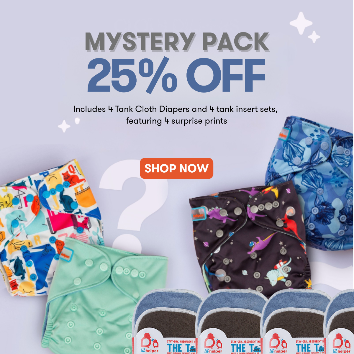 You get not one, not two, but FOUR of our wicked awesome Cloth Diapers. Our diapers are no-prep and ready to go right out of the package, so you can take “diaper prep” or “buy inserts” off the to-do list.
