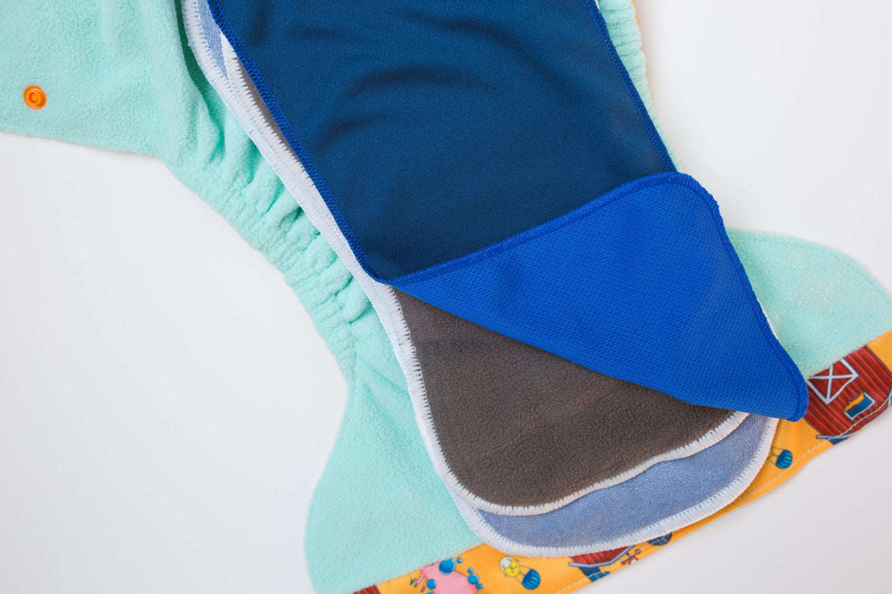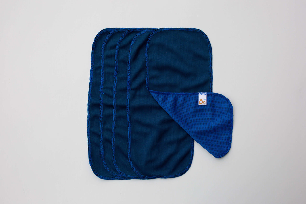 No one loves poop clean-up (trust us, we get it). These liners make the process way easier by catching solids so you can lift, flick, or spray them off without the mess. They’re especially helpful for heavy wetters, spreading moisture evenly across inserts to boost absorbency and prevent leaks. Use them anytime, but especially when applying diaper cream, they act as a barrier, protecting your inserts from residue. Just rinse off any leftover cream (a drop of blue Dawn helps with greasy ones!) before tossing them in with your diaper laundry.