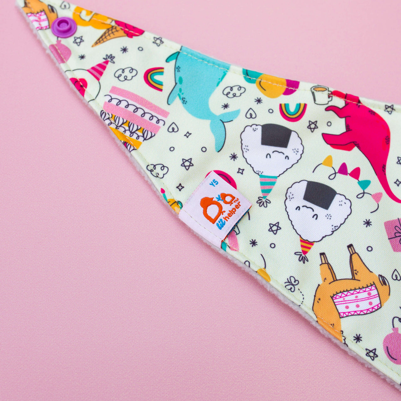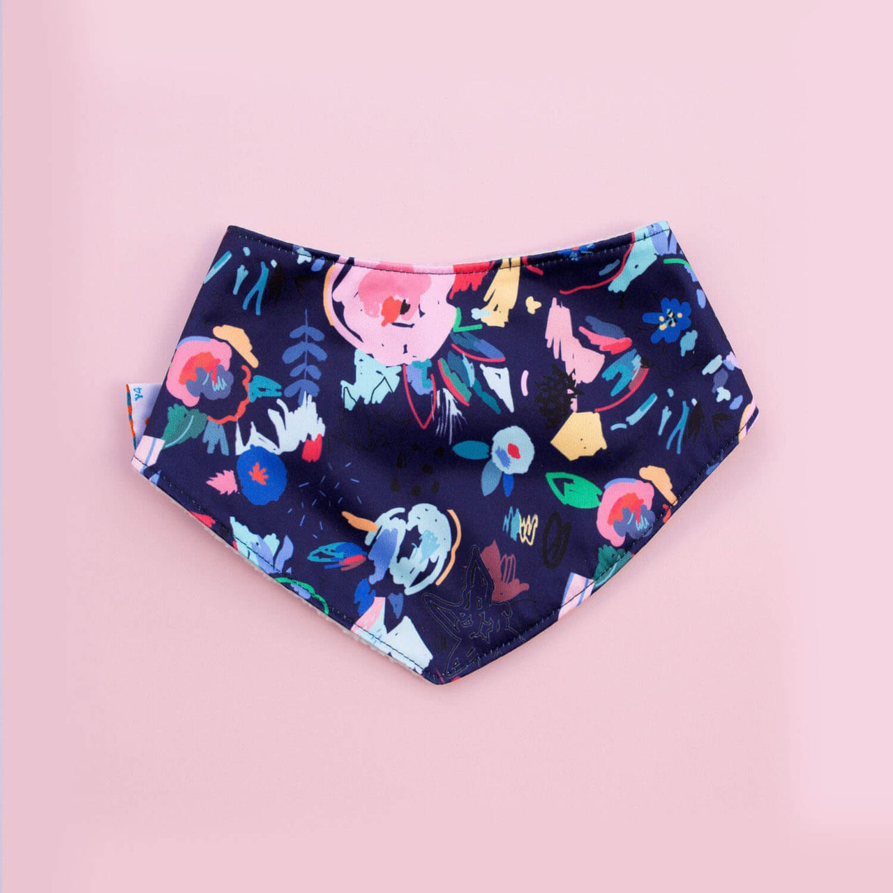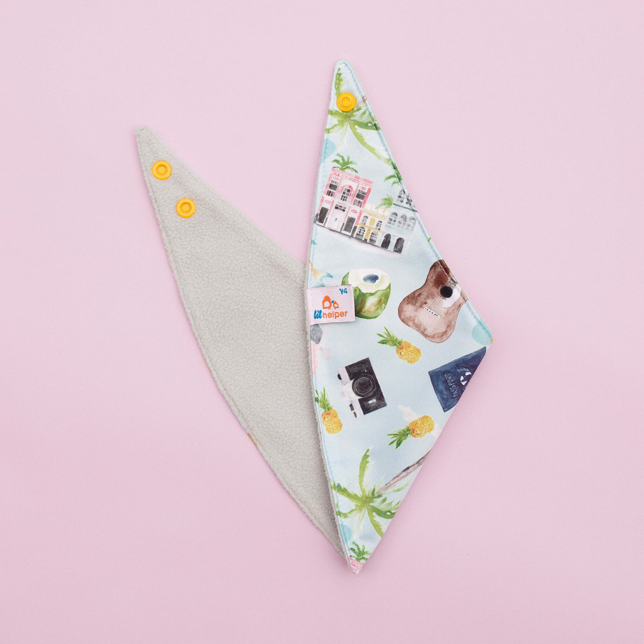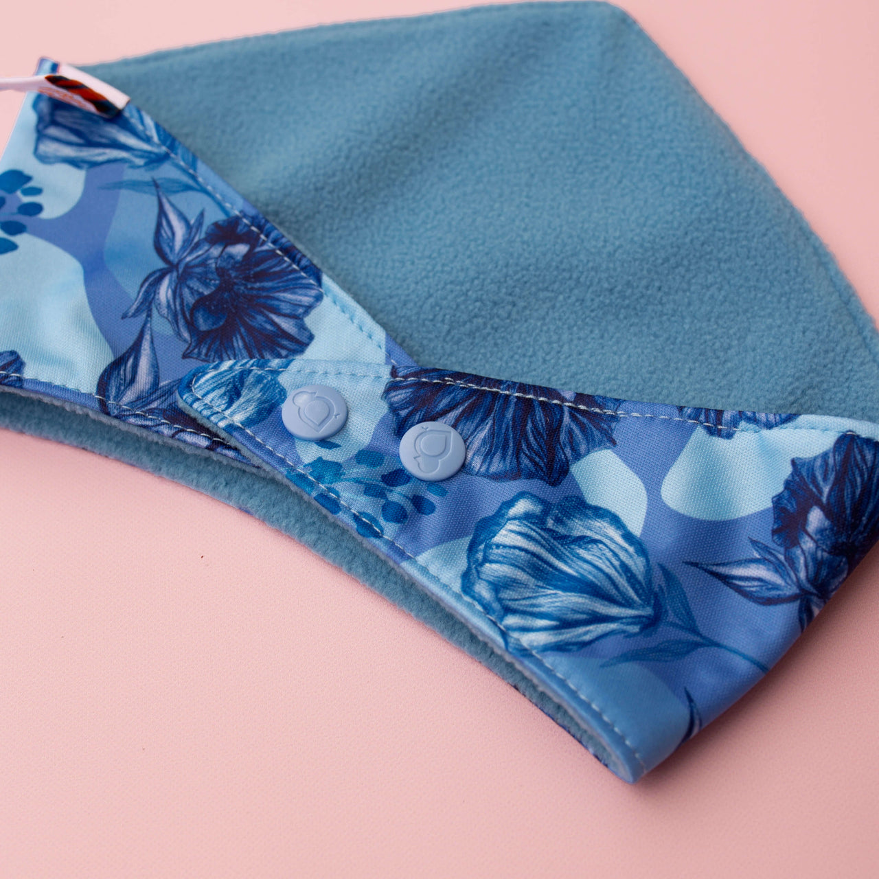 Soft fleece on one side for drool, waterproof PUL on the other for messes. Flip it, wipe it, repeat—two bibs in one stylish package.