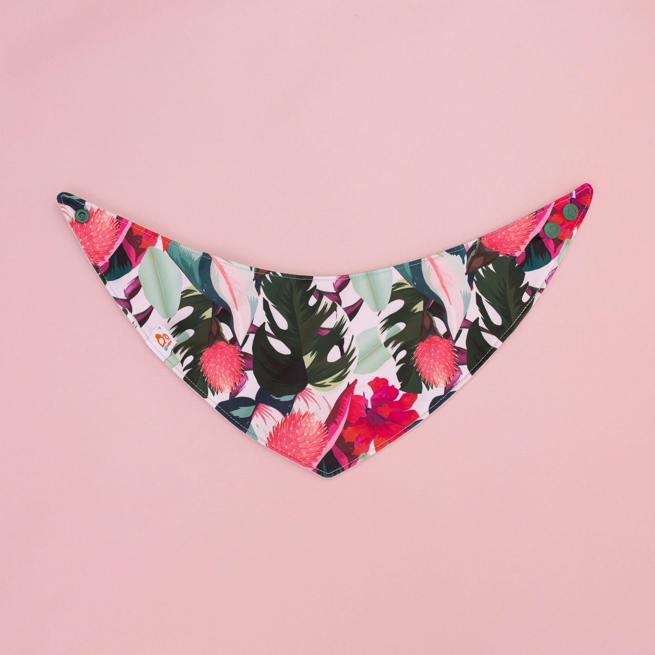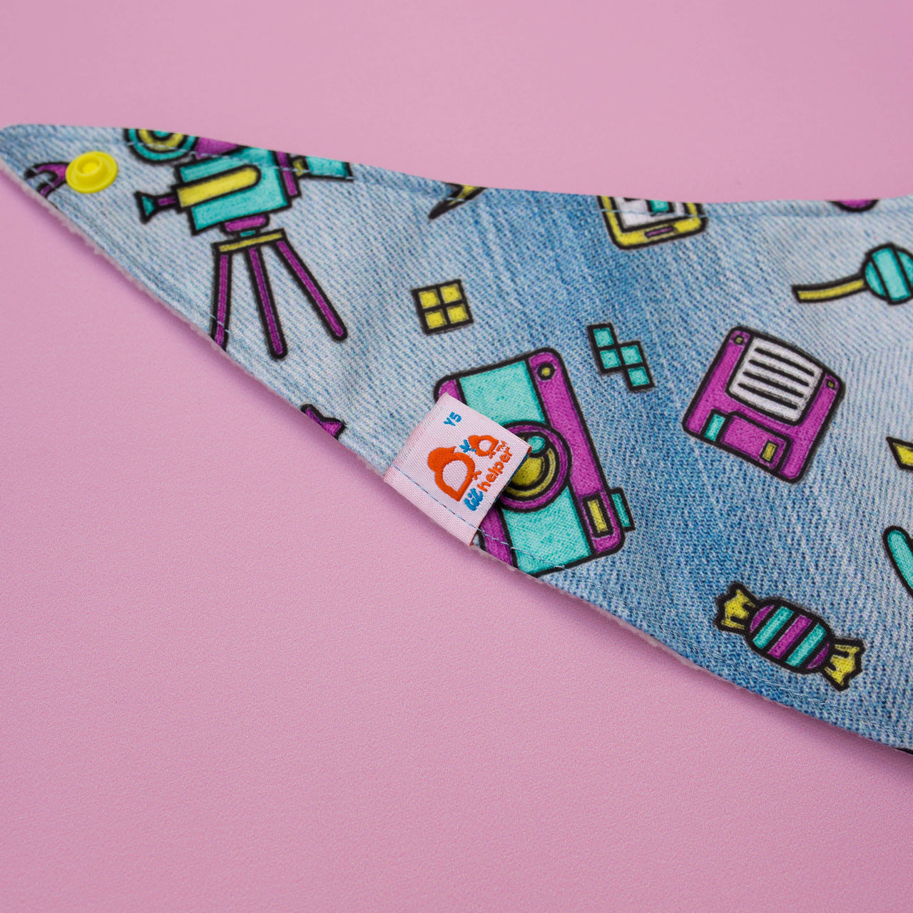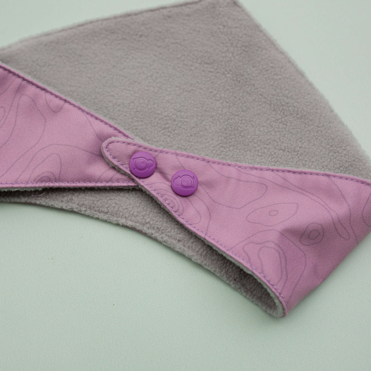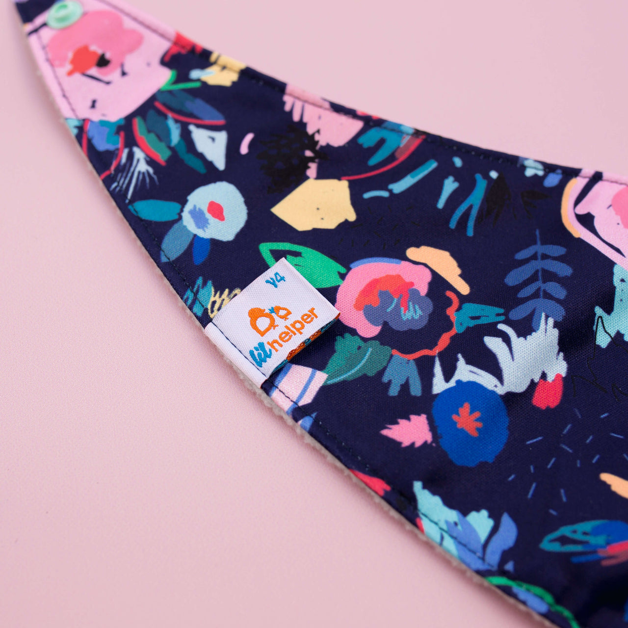 Soft fleece on one side for drool, waterproof PUL on the other for messes. Flip it, wipe it, repeat—two bibs in one stylish package.