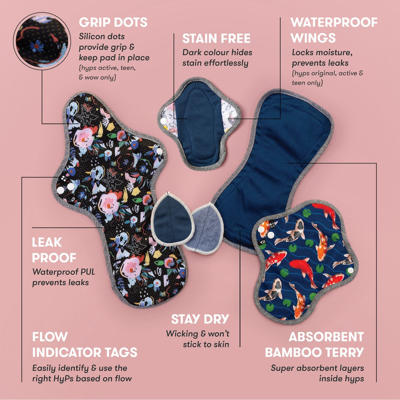 Try our custom menstrual pads trial kit. Test different sizes and add-ons to find your perfect fit. Sustainable, leak-proof, and tailored to your flow.