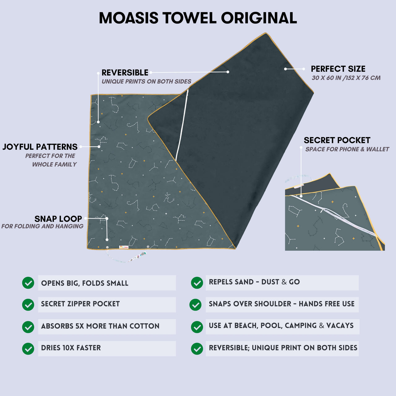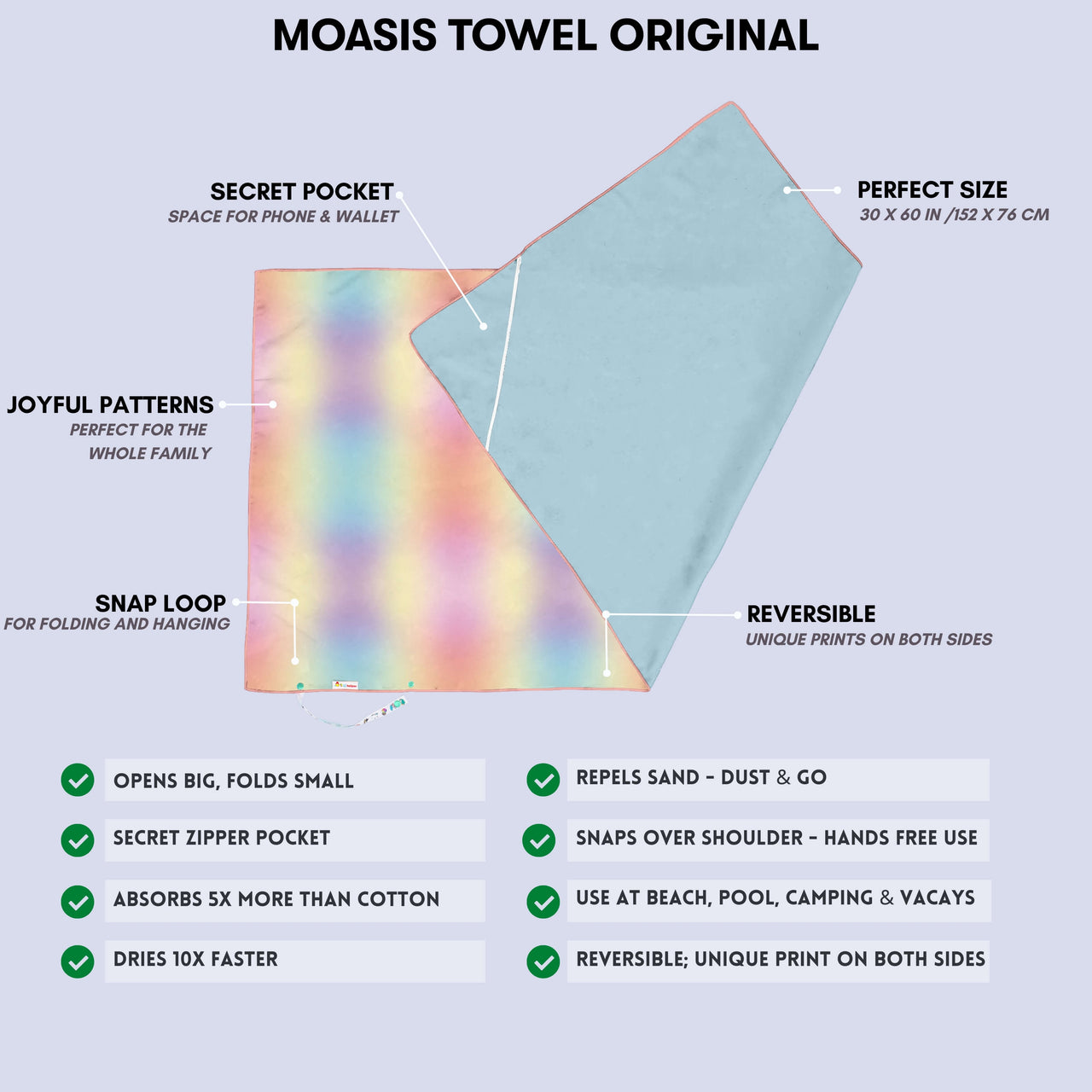 Upgrade your pool & beach essentials with the Moasis Towel Original. Lightweight, absorbent, and featuring a hidden pocket, it's perfect for beach days or poolside relaxation.