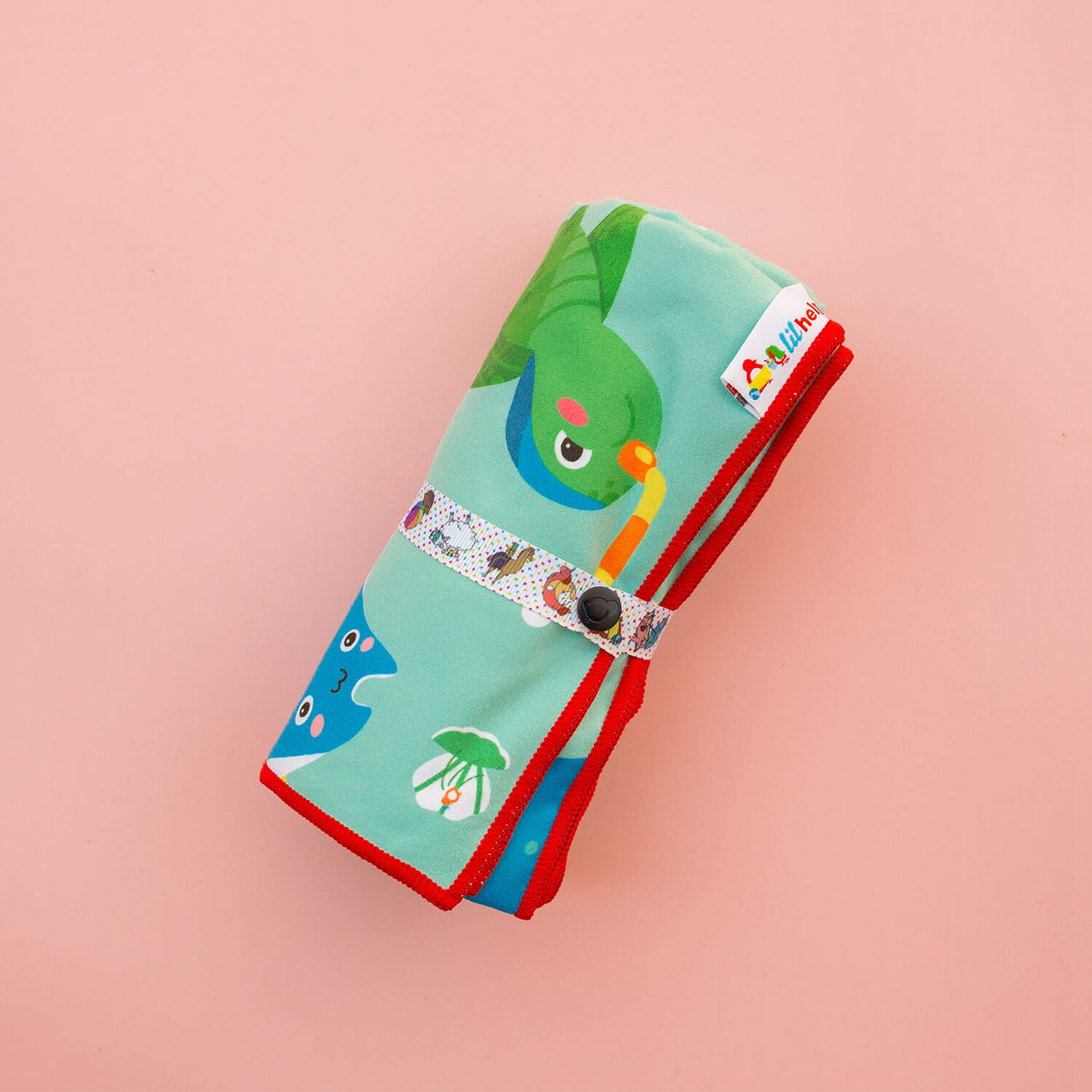 This towel can hold 5x its weight in water and the JAWsome material dries 10x faster than traditional cotton. So no matter how drenched your kiddo manages to get (themselves or you) at the splash pad, these towels can handle it fast. Plus, they are buttery soft, quick dry, and sand resistant, so you can leave the beach where it belongs.