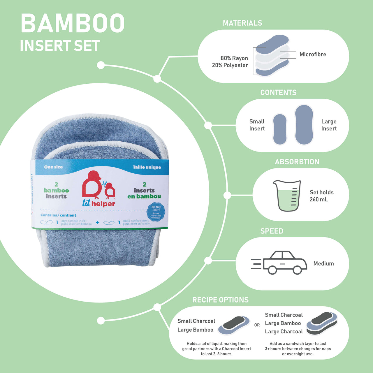 Each insert is made up of 4 layers — two outer bamboo layers for softness and two hidden microfiber layers for superior absorbency. Together, the set provides 8 layers of total protection that are gentle on skin yet powerful against leaks.